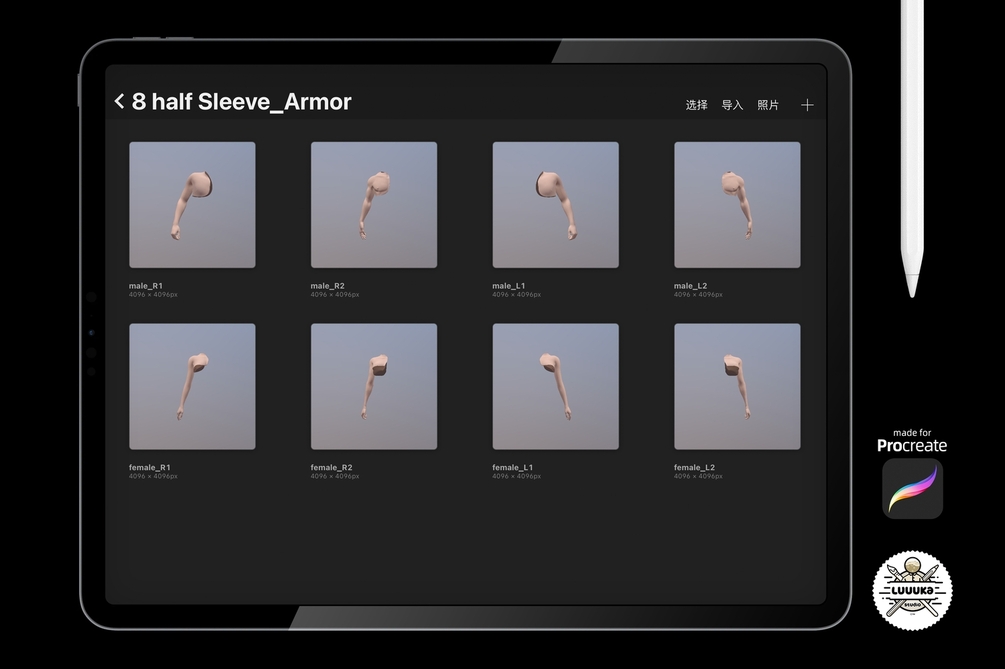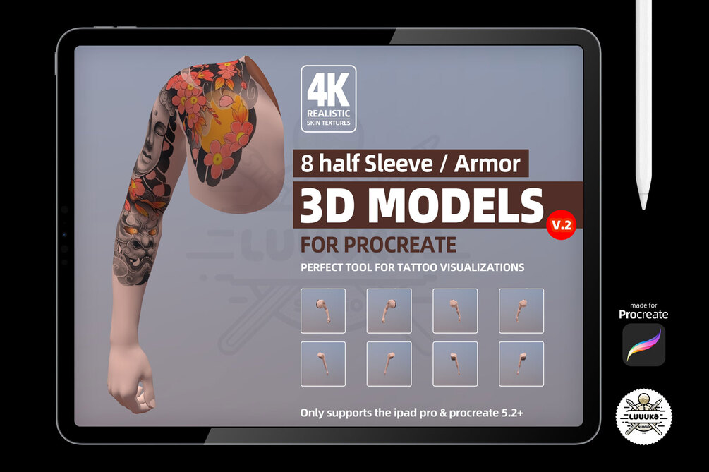 Procreate 3d Models for Tattoo (4K resolution)_8 half Sleeve_Armor v2.0 update!